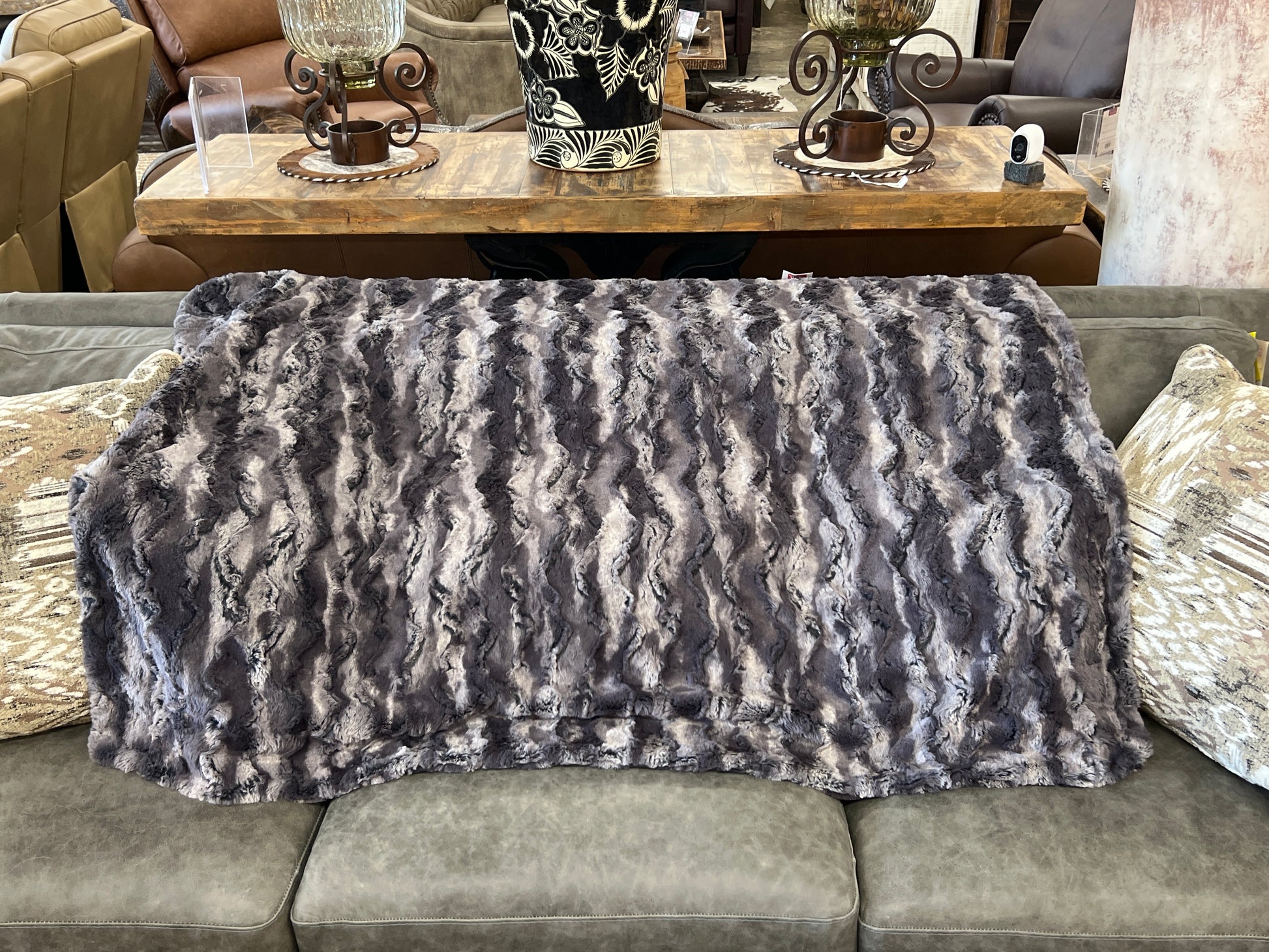 KC Small Speckled Gray Fur Throw